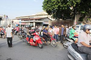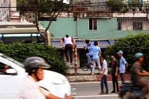 “Bạ đâu qua đó” của một số sinh viên Trường ĐH Khoa học Tự nhiên TP.HCM khi băng qua đường Nguyễn Văn Cừ (quận 5) để vào trường |
