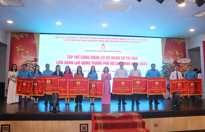 Dịp này, Công đoàn Viên chức TP.HCM đã vinh dự nhận Cờ thi đua của Tổng Liên đoàn Lao động Việt Nam; 28 tập thể công đoàn cơ sở nhận Cờ thi đua Liên đoàn Lao động TP.