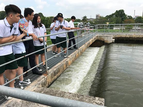 | Phụ huynh và học sinh trải nghiệm tại nhà máy xử lý nước |