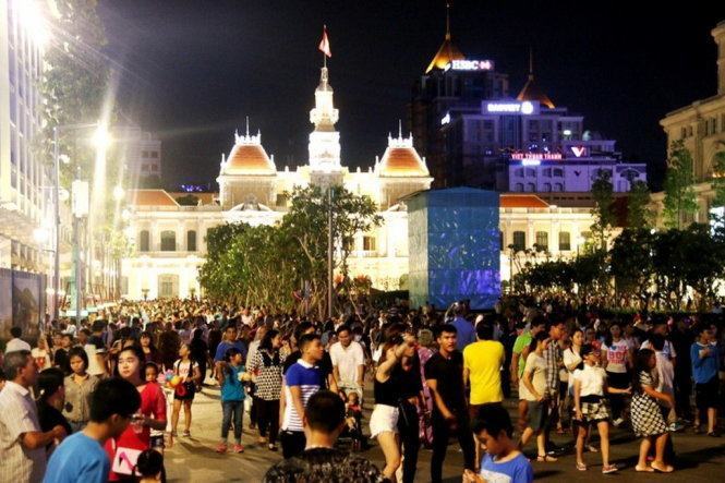 Đông đảo người dân và khách du lịch tiếp tục đổ về quảng trường Nguyễn Huệ. Ảnh: Tiến Long