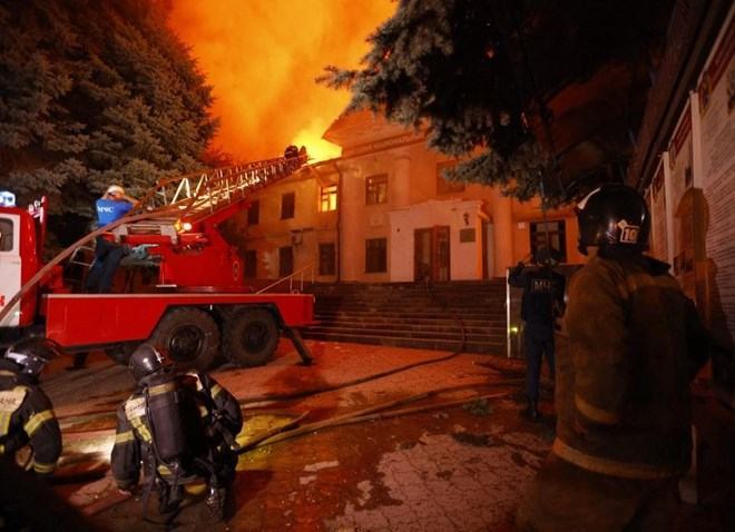 Một tòa nhà ở Donetsk bị trúng pháo kích, ngày 5.8.2023.