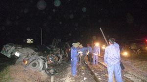 Qua đường ngang không rào chắn, tàu hỏa đâm nát xe tải