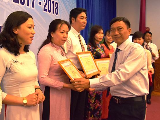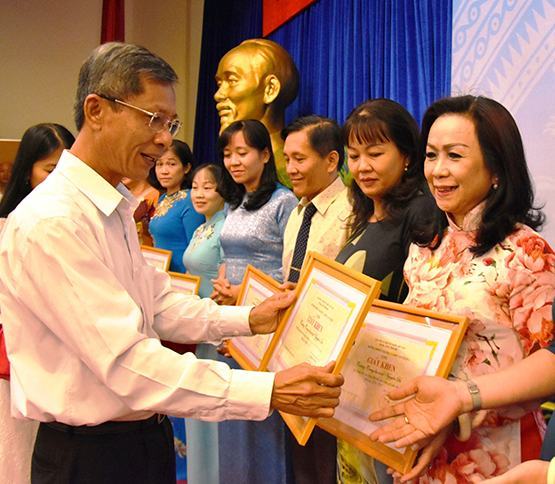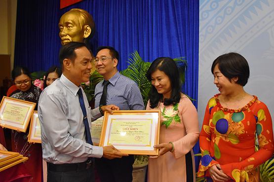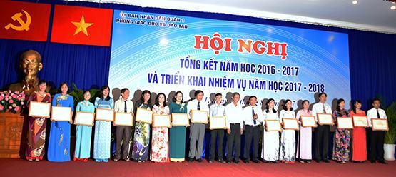 Ông Đỗ Hữu Tuyết – Phó Vụ trưởng Trung tâm Phát triển Giáo dục phía Nam – Bộ GD-ĐT trao giấy khen cho các cá nhân, tập thể xuất sắc trong năm học 2016-2017 ngành GD-ĐT quận 1
