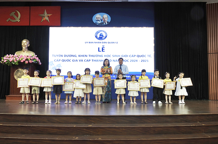 Sáng 20-5, UBND quận 12 tổ chức lễ tuyên dương, khen thưởng học sinh đạt thành tích cao trong các kỳ thi cấp quốc tế, quốc gia và thành phố năm học 2024-2025.