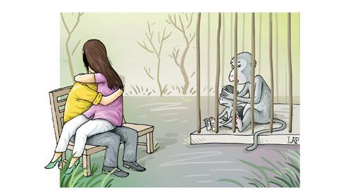 Bởi không ít lần hai con tôi (đứa lớn chỉ mới 6 tuổi) trở thành khán giả bất đắc dĩ khi phải chứng kiến cảnh các đôi bạn trẻ say sưa “câu mỏ” dưới một tán cây, trên ghế đá hoặc bên cạnh một chuồng thú nào đó.