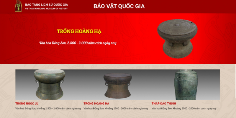 Triển lãm trực tuyến Bảo vật quốc gia của Bảo tàng Lịch sử Việt Nam