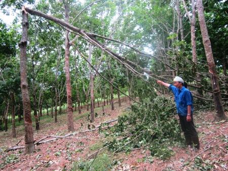 Gió Lào đã quật ngã hàng ngàn cây cao su đang trong độ tuổi khai thác ở huyện Bố Trạch