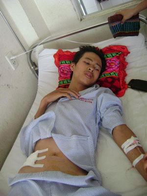 Em Ninh Văn Đức đang điều trị vết thương tại bệnh viện Đa khoa Quảng Nam. (Ảnh: CTV)