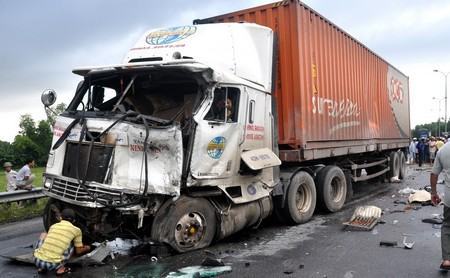 Đúng lúc này, xe container mang BKS 43H-6578 kéo theo rơ móc mang BKS 43R-0026 chạy từ hướng Quảng Ngãi ra Đà Nẵng đã tông rất mạnh vào xe khách 47B-002.81 làm cho xe khách quay ngang nằm giữa con lươn của đường.