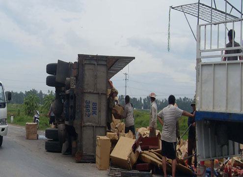Ngày 9/7, trên quốc lộ 1A qua huyện Quỳnh Lưu (Nghệ An), một chiếc xe tải chở đầy tương ớt đang chạy từ Bắc vào Nam bị mất lái khiến xe tải lật nghiêng giữa đường, toàn bộ số tương ớt trên xe bị đổ xuống đường