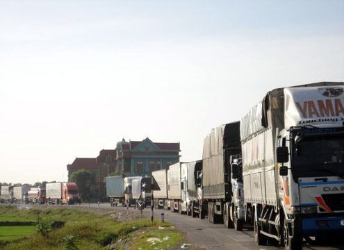 | Quốc lộ 1A tắc nghẽn tại khu vực miền Trung ngày 9/7. |