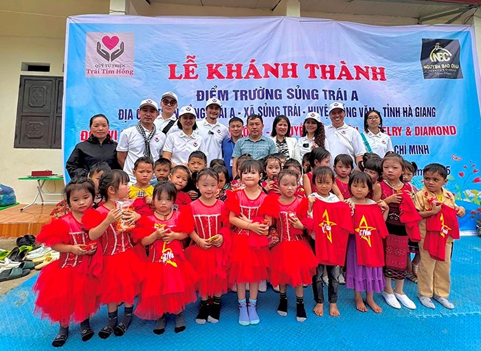 Được biết, Quỹ Trái tim hồng được đồng hành bởi Nguyễn Bảo Châu Jewelry & Diamond. Tham gia chuyến đi ý nghĩa này còn có danh hài Hoàng Mập. Ngôi trường thuộc Quỹ Trái tim hồng số 6 này mang tên điểm Trường Sủng Trái A (thuộc xã Sủng Trái, huyện Đồng Văn, tỉnh Hà Giang). Ngôi trường gồm 2 phòng học lớn, phòng bếp và phòng nghỉ lại cho giáo viên, nhà vệ sinh, các trang thiết bị dạy và học của giáo viên và các bé cơ bản cũng được trang bị mới.