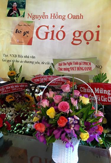 Tập thơ Gió gọi (NXB Hội Nhà văn) của nhà thơ Nguyễn Hồng Oanh, đây là tập sách thứ 6 (gồm 51 bài) của nhà thơ nữ quê ở Can Lộc (Hà Tĩnh). Tại buổi ra mắt, tác giả và bạn bè đã đọc và diễn ngâm một số bài thơ trong tập Gió gọi. Nhà thơ Đỗ Ngọc Quang chia sẻ, Gió gọi từ hư ảo yêu thương từ cõi người đến với cõi người, thơ mang nỗi cô đơn mà vẫn gọi người tri âm một cách kỳ lạ. Thơ của chị thường nghiêng về tình cảm và nỗi nhớ quê hương qua những bức tranh sinh động được viết bằng các thể loại mang âm hưởng dân ca ví dặm như lời tâm tình, hò hẹn yêu thương. Nguyễn Hồng Oanh còn là nghệ sĩ ngâm thơ thường giao lưu với các trường học tại các quận huyện của TP.HCM vừa được Nhà nước trao tặng danh hiệu Nghệ nhân ưu tú năm 2015 hiện đang sinh hoạt tại Hội thơ Nghệ An tại TP.HCM. Chị đã từng tham gia biên soạn công trình lớn như tuyển thơ Đường về xứ Nghệ, Tuyển tập thơ, Lễ hội quan Thánh đế quân.