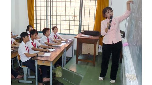 "Do mỗi quận, huyện có đặc thù khác nhau nên trung tâm chúng tôi tự biên soạn chương trình giảng dạy theo các chủ đề: Nguyên tắc chọn nghề, Ý nghĩa nghề nghiệp, Tìm hiểu năng lực bản thân… Mặc dù dạy trong chương trình chính khóa nhưng không lấy điểm, không trả bài, không kiểm tra nên khá nhẹ nhàng và cuốn hút học sinh.
