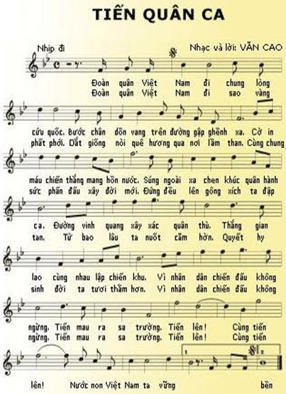 Cũng vào thời điểm lịch sử huy hoàng này, bản Tiến quân ca của nhạc sĩ Văn Cao đã vang lên hào hùng khắp mọi nẻo đường của thủ đô Hà Nội tạo nên một bản đại hợp xướng âm thanh rực lửa của ngày cách mạng. Nổi tiếng với nhiều ca khúc đi cùng lịch sử như Trường ca sông Lô, Mùa xuân đầu tiên, Làng tôi, Ngày mùa, nhạc sĩ Văn Cao đã hòa tấu bản Tiến quân ca bằng chiếc đàn Acmonium trong ngày hội lớn của non sông. Một hình ảnh đẹp mà biết bao nhân sĩ trí thức xứ Hà thành vẫn còn nhớ mãi. Nhịp đi hùng tráng của cách mạng được dựng bằng hình ảnh oai phong hùng tráng: “Đoàn quân Việt Nam đi, chung lòng cứu quốc”. Mỗi khi bài hát ngân lên, trái tim người Việt lại cảm thấy thiêng liêng hơn bao giờ hết: “Cờ in máu chiến thắng mang hồn nước. Súng ngoài xa chen khúc quân hành ca”. Niềm tự hào vẫn chưa thôi trong từng đoạn nhạc để vinh quang thuộc về đất nước: “Đường vinh quang xây xác quân thù. Tiến mau ra sa trường, cùng tiến lên. Nước non Việt Nam ta vững bền”. Giá trị lớn lao về âm nhạc và lịch sử đã giúp Tiến quân ca mau chóng trở thành Quốc ca chính thức của nước Việt Nam Dân chủ cộng hòa (nay là Cộng hòa XHCN Việt Nam). Gần một thế kỷ, nay vẫn lắng hồn non nước oai linh.