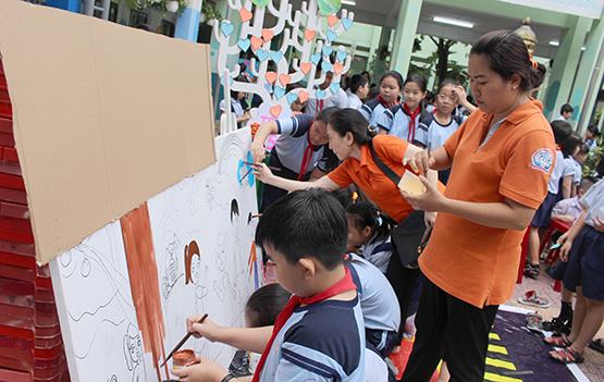 Cô và trò Trường TH Nguyễn Huệ cùng tạo bức tranh tập thể khổ lớn