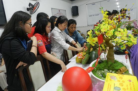 Cũng nằm trong chuỗi hoạt động ngày Tết, “Ngày hội Xuân yêu thương” của trường đã trao tặng 7 phần quà cho HS vượt khó vươn lên trong học tập. Cùng với đó, 28 gian hàng ẩm thực đến từ 28 lớp cũng đã gây quỹ từ thiện, góp phần chăm lo Tết cho những hoàn cảnh khó khăn tại các mái ấm, nhà mở, bệnh viện, người già neo đơn trên địa bàn TP …