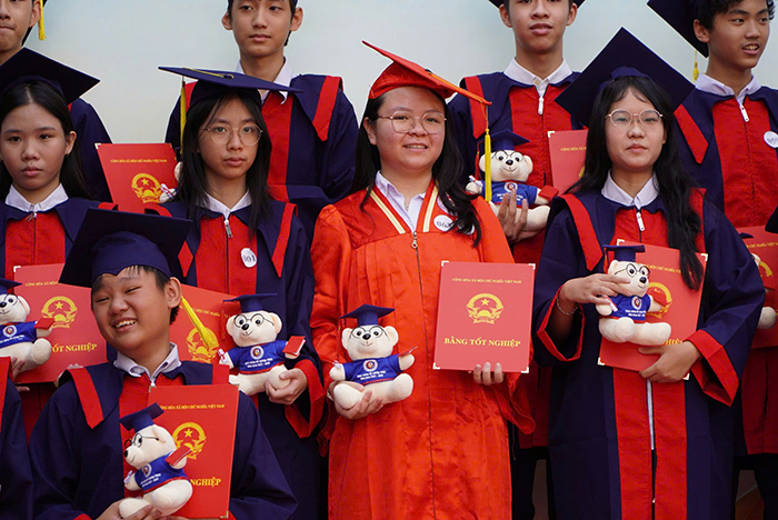 “Lễ ra trường hôm nay mang nhiều ý nghĩa. Sau thời khắc này, các em sẽ là những cựu học sinh của trường và phía trước sẽ là những chặng đường mới đang chờ đón các em khám phá. Dù mỗi em sẽ có những nguyện vọng và lựa chọn trường THPT khác nhau, thầy luôn mong các em luôn giữ vững quyết tâm và tự tin vào con đường mình đã chọn. Dù ở đâu, trong môi trường học tập nào, các em hãy luôn trân trọng và giữ gìn tình cảm, sự kính trọng đối với thầy cô và cha mẹ – những người luôn yêu thương, đồng hành cùng các em trên mọi bước đường” – thầy Nguyễn Công Phúc Khánh gửi gắm.