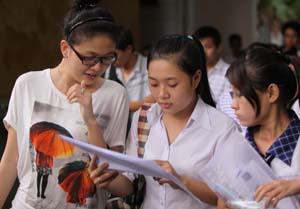 Thí sinh đang xem lại bài sau kỳ thi ĐH-CĐ 2012. Ảnh: Anh Khôi