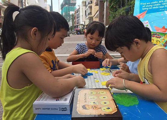 Các em thiếu nhi chơi cờ caro tổ ong