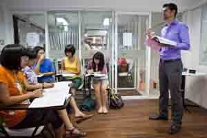 Học viên Việt Nam trong giờ học tiếng Anh với giáo viên bản ngữ tại Học viện Yola