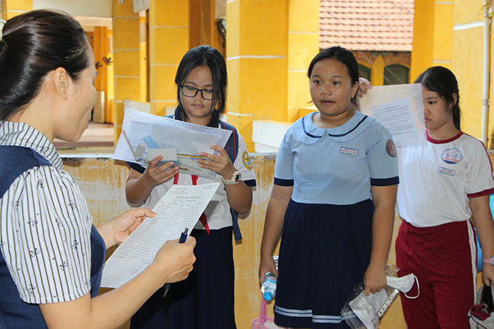 Một số hình ảnh thí sinh tham gia khảo sát vào lớp 6 Trường THCS và THPT Trần Đại Nghĩa sáng nay tại điểm khảo sát Trường THPT Trưng Vương