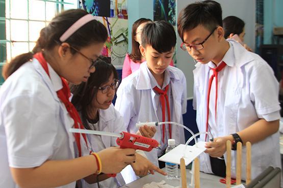Trước đó, sản phẩm mô hình xe tự vận hành bằng cách dùng nguyên lý chuyển động bánh răng của chiếc bút xóa của một nhóm học sinh chế tạo từ phòng học này đã giành giải A cuộc thi sáng tạo dành cho học sinh Q.3. Cũng từ phòng học này, hàng loạt sản phẩm đã ra đời từ trí sáng tạo, bàn tay khéo léo của các em như máy bán nước tự động, cục sạc điện thoại… Mỗi sản phẩm được tạo ra là tổng hợp ứng dụng của nhiều bộ môn như toán, vật lý, hóa học, sinh học, mỹ thuật, quản trị tài chính…