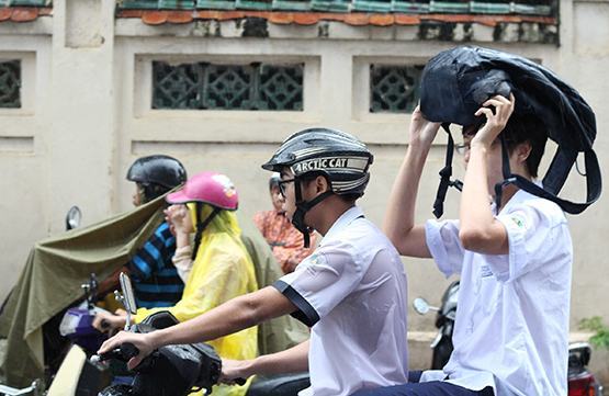 Sau thi ngoại ngữ, sĩ tử đội mưa ra về