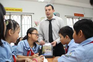 Giờ học tiếng Anh tăng cường tại Trường TH Lê Văn Sỹ (Q.3, TP.HCM). Ảnh: A.K |
