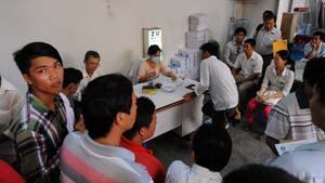 Cảnh khám sức khỏe cho công nhân xin việc tại TP.HCM. Ảnh: I.T |