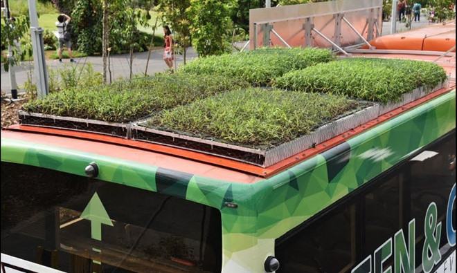 Singapore vừa đưa vào sử dụng xe buýt được trồng cây trên mui theo dự án nghiên cứu môi trường đô thị xanh.