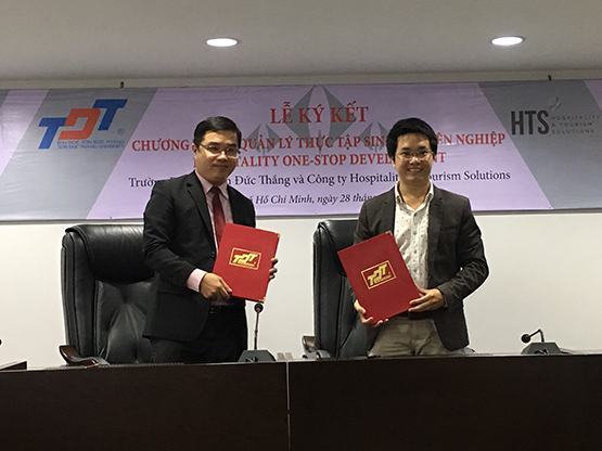Sáng 28-6, Trường ĐH Tôn Đức Thắng và Công ty TNHH Hospitality & Tourism Solution (HTS) đã tổ chức lễ ký kết chương trình cung ứng và quản lý thực tập sinh chuyên nghiệp. Theo đó, những sinh viên trong chương trình đào tạo chất lượng cao khoa Quản trị kinh doanh của trường sẽ được tham gia thực tập tại các khách sạn 5 sao có tên tuổi tại TP.HCM như InterContinental, Carevelle, The Myst Đồng Khởi, Windsor Plaza… ngay từ năm nhất. Các kỳ thực tập sẽ được thực hiện vào mùa hè và kéo dài trong suốt 4 năm học (trung bình 3 tháng/kỳ thực tập) với các bộ phận: lễ tân, buồng phòng, ẩm thực. Sinh viên sẽ được các chuyên gia hàng đầu ngành ẩm thực, nhà hàng khách sạn, dịch vụ hướng dẫn thực hành các kỹ năng nghề, kỹ năng quản lý dự án, kỹ năng mềm, năng lực tư duy sáng tạo, thái độ làm việc để thích nghi với những thay đổi trong tương lai; được tham gia các buổi tọa đàm chia sẻ về nghề nghiệp. Kết thúc đợt thực tập, ngoài những kinh nghiệm và trải nghiệm thực tế, sinh viên sẽ được nhận các chứng chỉ nghề, chứng chỉ TOEIC và MOS có giá trị quốc tế.