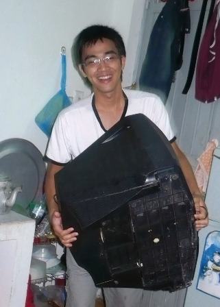 Cậu sinh viên này háo hức với chiếc tivi cỡ bự vừa mượn được từ người bà con.