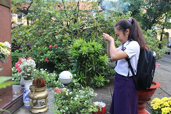 Thắp nhang khấn cầu trước giờ thi. Tại điểm thi Trường Nguyễn Thị Minh Khai (TP.HCM) sáng 22-6, một thí sinh nữ đã đến địa điểm thi khá sớm để thắp nhang khấn cầu trước giờ làm bài. Cụ thể, trong khi từng nhóm thí sinh tập trung tại các hành lang trước phòng thi ôn lại bài lần nữa, thì dưới sân trường, một thí sinh nữ lặng lẽ đến tượng bà Nguyễn Thị Minh Khai thắp nhang khấn, cầu mong gặp nhiều may mắn trong kỳ thi quan trọng. Sau giây phút trang nghiêm đó, thí sinh này vào phòng thi cùng bạn bè chuẩn bị làm bài môn ngữ văn với quyết tâm rất cao.
