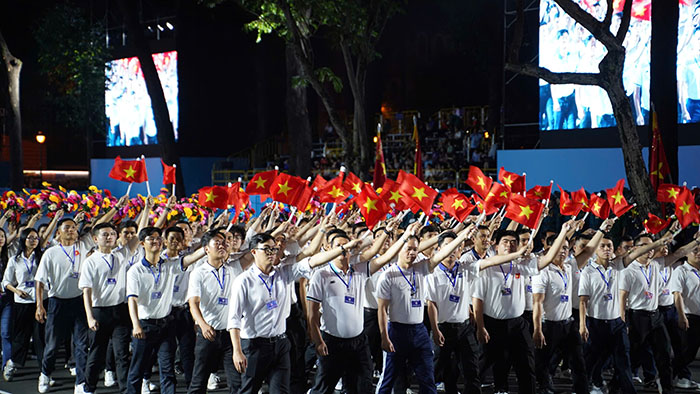 Các khối xuất phát từ đường Lê Duẩn, đi qua Hội trường Thống Nhất, tỏa đi 4 hướng và tập kết tại 4 điểm gồm: Bến Bạch Đằng, Công viên Tao Đàn, Sân vận động Hoa Lư và Công viên Lê Văn Tám.