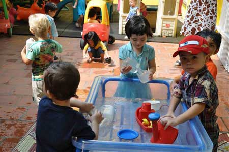 Để con được tiếp xúc với lối sống của người Tây, được học tiếng Anh từ nhỏ, không ít phụ huynh đã mạnh tay chi 2 triệu đồng một ngày cho con học trường mầm non quốc tế.