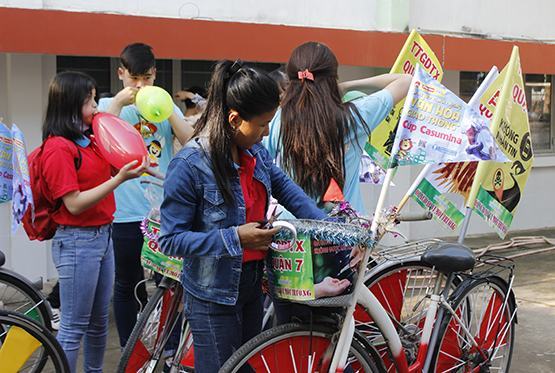 | TTGDTX Q.7 đang kiểm tra lại lần cuối xe đạp của đơn vị mình trước giờ xuất phát |