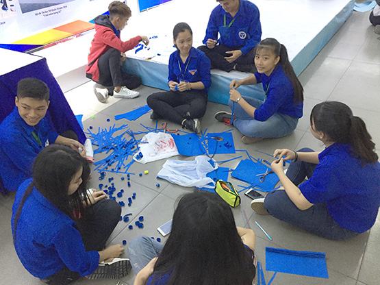Các bạn trẻ chuẩn bị sản phẩm tham gia liên hoan Tuổi trẻ sáng tạo