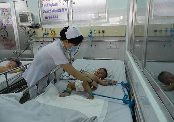 | Trẻ mắc SXH điều trị tại BV Nhi đồng I, TP.HCM. Ảnh: H.Tr |