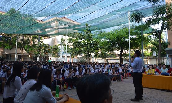 Sáng 18-5, Trường THCS Nguyễn Trãi, Q.Gò Vấp đã tổ chức sinh hoạt chuyên đề “Sử dụng mạng xã hội cho gần 2.300 em HS tham gia. Các em đã được nghe báo cáo viên là thầy Lương Dũng Nhân – Phó Giám đốc Trung tâm Đào tạo Tài năng trẻ châu Á Thái Bình Dương (ATY) chia sẻ những mặt tích cực và hạn chế của việc sử dụng mạng xã hội hiện nay trong giới trẻ. Thông quá đó, các em có thêm kỹ năng về cách dùng mạng xã hội như face, zalo, viber… “nói không với anh hùng bàn phím, phóng viên lá cải” để không ảnh hưởng về tinh thần, sức khỏe và học tập. Cô Trương Thị Đẹp – Hiệu trưởng nhà trường cho biết, trong năm học nhiều chuyên đề về giáo dục tâm lý lứa tuổi, kỹ năng sống đã được thực hiện thường xuyên vào các buổi sinh hoạt dưới cờ cho HS của 48 lớp trong trường. Dịp này ATY cũng đã khởi động Học kỳ quân đội hè 2017 chủ đề “Hiếu thảo, học giỏi, mạnh khỏe và tháo vát hơn” với chương trình huấn luyện hè đặc sắc dành cho độ tuổi 7 đến 19 tuổi.