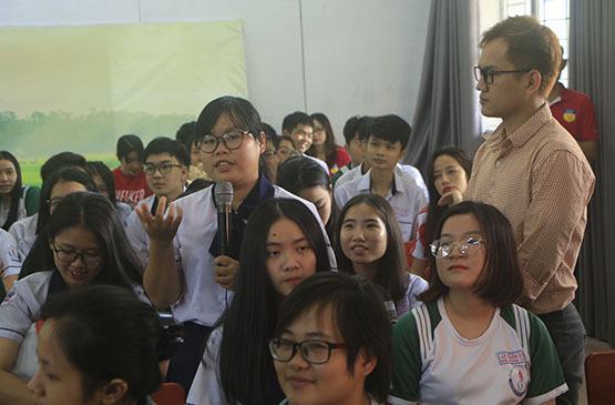 Học sinh Trường THPT Lê Thánh Tôn đặt câu hỏi cho các chuyên gia