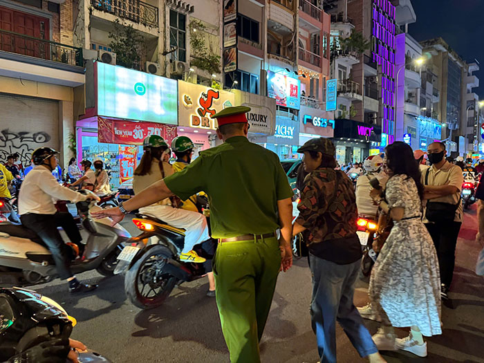 Giữa dòng người đông đúc, lực lượng cảnh sát giao thông và trật tự đô thị được tăng cường tại các nút giao trọng điểm để điều tiết giao thông, hạn chế ùn tắc kéo dài. Một số tuyến đường được phân luồng linh hoạt nhằm đảm bảo an toàn cho người dân vui chơi.