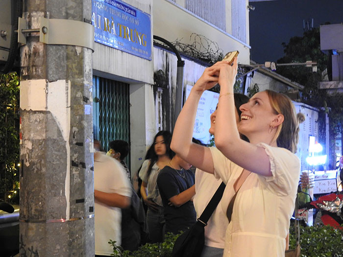 Chia sẻ khi cùng nhóm bạn dạo quanh khu vực Nhà thờ Đức Bà, chị Nguyễn Thị Mai Nhi (ngụ phường Phạm Ngũ Lão) cho biết: “Năm nào tôi cũng ra trung tâm chơi Noel. Đông nhưng không khí rất vui, mọi người ai cũng háo hức, cảm giác cuối năm rõ rệt hơn”.