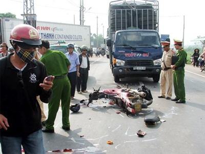 Khi đến khu vực trên, xe máy đâm trực diện đầu xe tải mang biển số 76C 01938 (chưa rõ người điều khiển) chạy ngược chiều. Hậu quả, anh Hậu, chị Thanh và cháu Ngân chết tại chỗ.