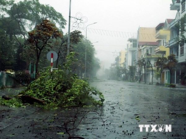 Cây xanh bị gió quật gãy đổ trên các tuyến phố nội thành thành phố Móng Cái (Quảng Ninh). (Ảnh: Xuân Tùng/TTXVN)