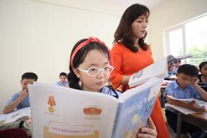 Giáo viên hướng dẫn học sinh tiểu học tập đọc (ảnh mang tính minh họa). Ảnh: A.Khôi