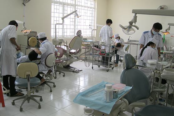 | Sinh viên chuyên ngành Răng-hàm-mặt Trường ĐH Y dược Cần Thơ đang thực tập. Ảnh: Đ.P |