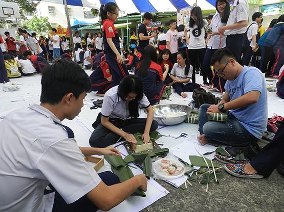| HS Trường THPT Bùi Thị Xuân, TP.HCM làm bánh chưng tặng người nghèo nhân dịp Tết cổ truyền. Ảnh: H.Triều |