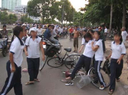 Một trong những cảnh học sinh bỏ học đánh nhau.