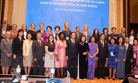 Phó Chủ tịch nước Đặng Thị Ngọc Thịnh đánh giá cao những đóng góp quan trọng của cơ chế hợp tác về PN và Kinh tế APEC trong thời gian qua. Đồng thời cho rằng, hiện nay trong quá trình toàn cầu hóa, cuộc cách mạng công nghiệp 4.0 đang tạo ra những cơ hội để thúc đẩy hợp tác, liên kết kinh tế quốc tế, song đặt ra không ít thách thức, khó khăn, nhất là đối với PN. Liên hợp quốc đã thông qua Chương trình nghị sự về phát triển bền vững đến năm 2030, trong đó đề cao nhiệm vụ bảo đảm bình đẳng giới, đây là khuôn khổ quan trọng để thúc đẩy hợp tác và phát triển trên phạm vi toàn cầu, trong đó nâng cao vai trò và đóng góp của PN là một trong những nhiệm vụ hàng đầu. Ở Việt Nam, PN chiếm 48% lực lượng lao động, đóng vai trò vô cùng quan trọng trong nền kinh tế. Việt Nam đứng thứ 65/144 quốc gia về chỉ số khoảng cách giới và đứng thứ 33 về chỉ số PN tham gia hoạt động kinh tế. Đặc biệt, tỷ lệ PN giữ vị trí giám đốc, chủ DN đạt khoảng 25%; DN do PN làm chủ ngày càng đóng vai trò quan trọng trong phát triển kinh tế của nước nhà. Vì vậy cần tạo cơ hội và khuyến khích kết nối các nữ doanh nhân giữa khu vực công và khu vực tư, không chỉ trong từng nền kinh tế mà cả ở quy mô khu vực như trong APEC để giúp các DN do PN làm chủ có cơ hội được chia sẻ cũng như phát huy mạnh mẽ hơn vai trò và đóng góp vào nền kinh tế. Từ đó xây dựng tầm nhìn chiến lược cho những năm tiếp theo để thúc đẩy sự trao quyền kinh tế của PN ở khu vực Châu Á – Thái Bình Dương nói riêng và toàn thế giới nói chung.